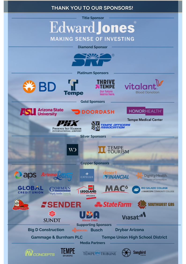 For the past 27 years, the Tempe Chamber of Commerce and the City of Tempe have partnered to create a premier forum, bringing together Tempe's business, civic, government and community leaders.