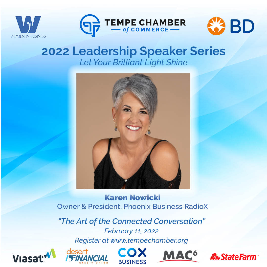 About Karen Nowicki: Karen Nowicki is the Owner and President of Phoenix Business RadioX and Axiom Coaching. She has successfully produced, promoted, and launched over 1000 podcasts and radio shows covering topics from BioScience Innovation to Trauma Informed Workplaces and just about everything in between.Karen has spent over 30 years in corporate, small business and educational leadership and has an impressive client list that includes: The Arizona Technology Council, Arizona Conscious Capitalism, Local First Arizona and several others. Karen is a certified Integration Coach with certifications in communications, facilitative leadership, mindfulness, talent management, strategic planning and personal development. Entrepreneurs and Executives hire Karen to unleash their best self without sacrificing their business persona because most don’t know how to stand up, stand out, and stand in their authentic power. So, Karen helps her clients master their unique purpose, passion, and power to create and leverage authentic relationships for greater success.