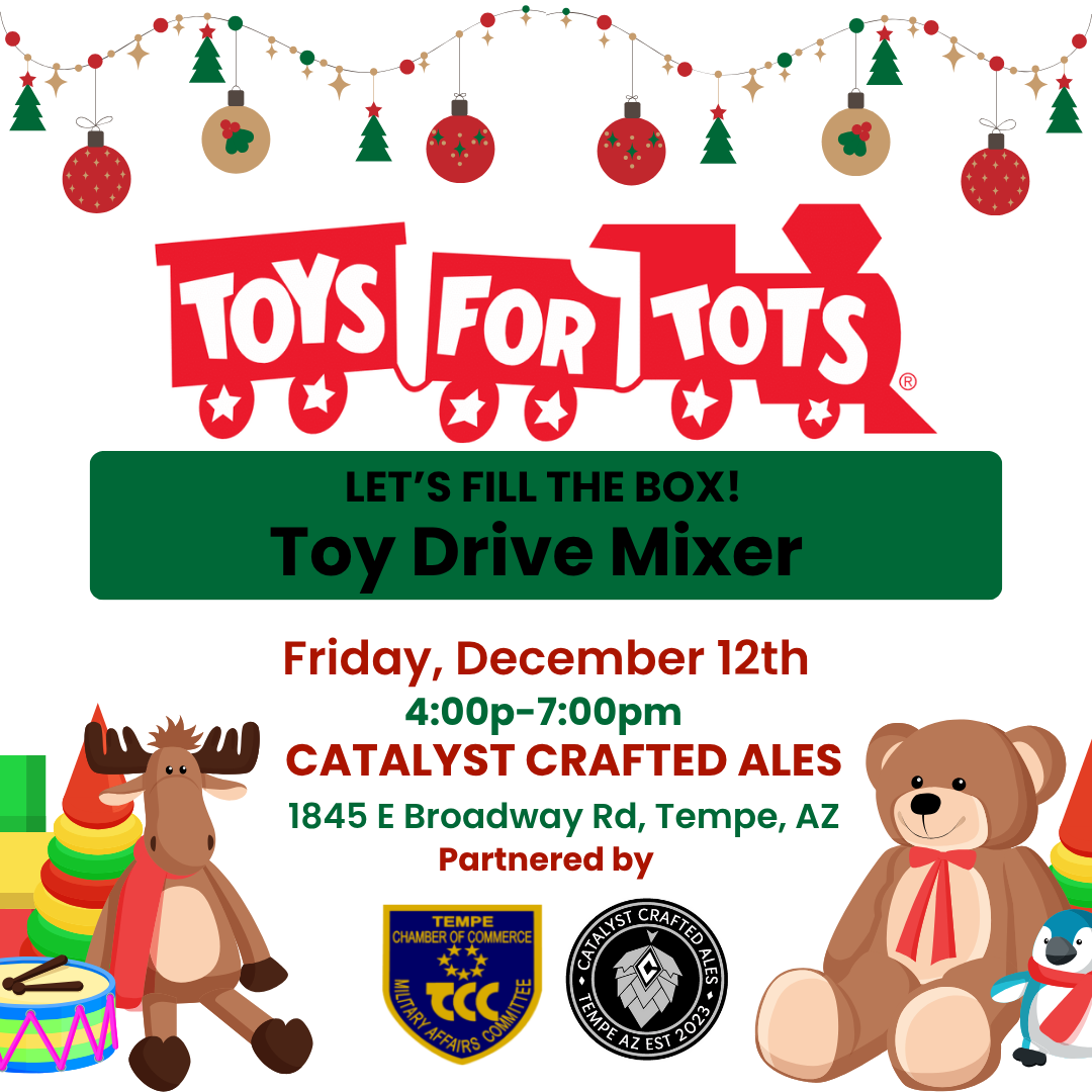 Join Catalyst Crafted Ales, the Tempe Chamber Military Affairs Committee, and Toys for Tots invite you to come together for a huge community toy drive drop-off mixer and truck sendoff!
